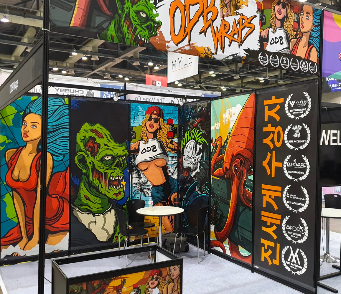 This stand was designed and developed from concept through to full production to create a bold, high-impact presence in a busy exhibition space. The layout focused on strong visibility, clear product display areas, and a structured customer flow to draw people in. Working with overseas manufacturing partners, the stand was built in modular sections for efficient production, transport, and fast on-site setup. Materials, lighting, and branded panels were carefully planned to ensure durability, consistent colour, and a professional finish under event conditions.